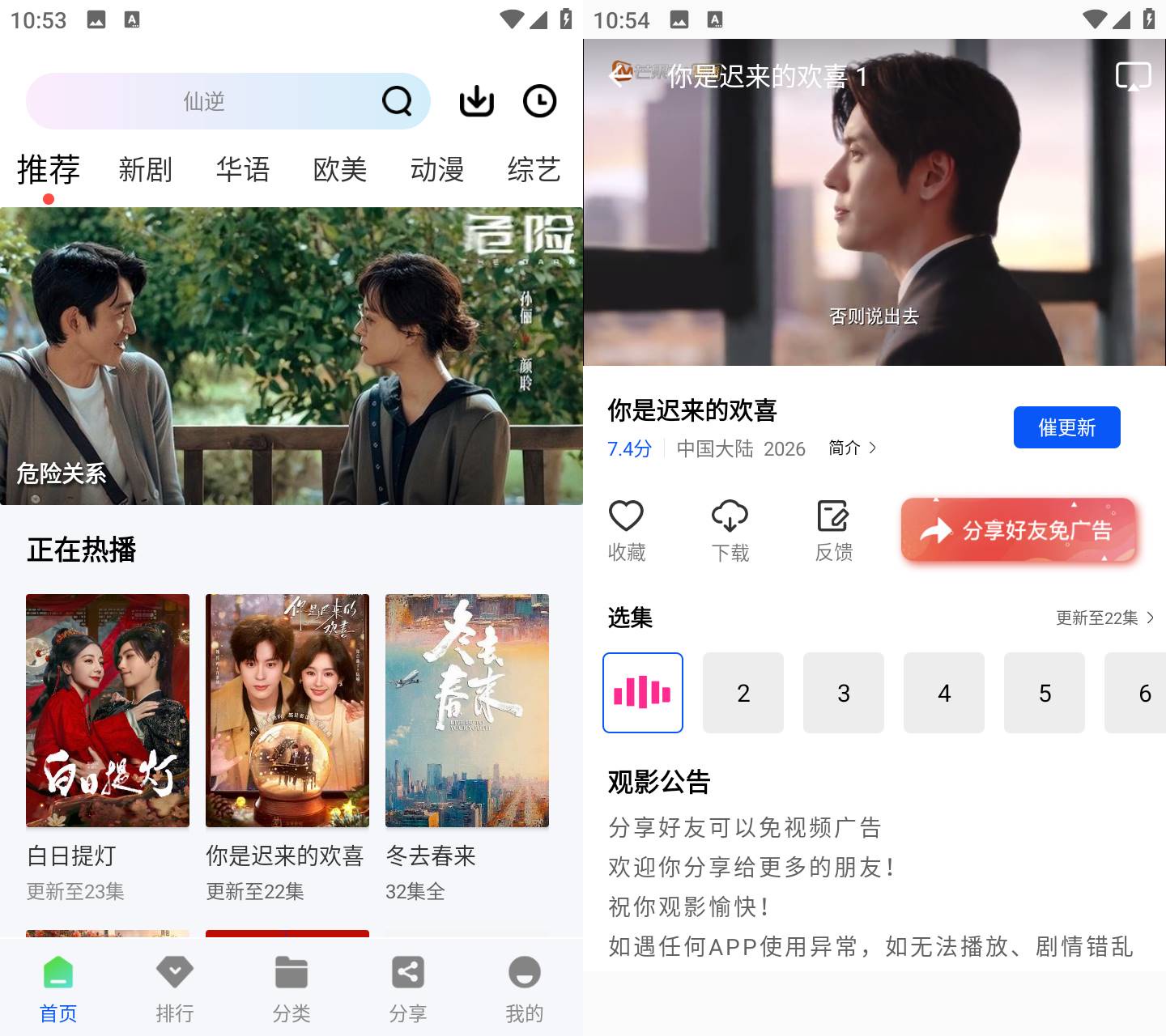 软件没有任何广告,不存在开屏广告、片头广告、暂停广告以及弹窗广告,点击播放直接进入正片,全程无打扰,带来沉浸式观影感受。