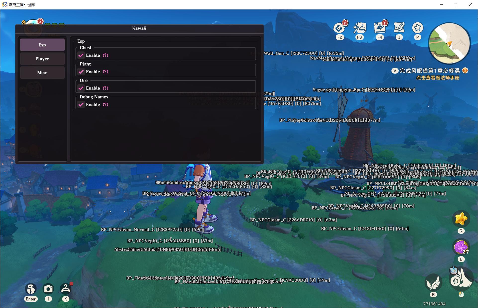 目标传送(Target Teleport) 开启透视勾选对应的物品,就可以按快捷键传送到对应物品的旁边,默认快捷键T,例如勾选chest即为宝箱,然后你就可以传送到宝箱旁边