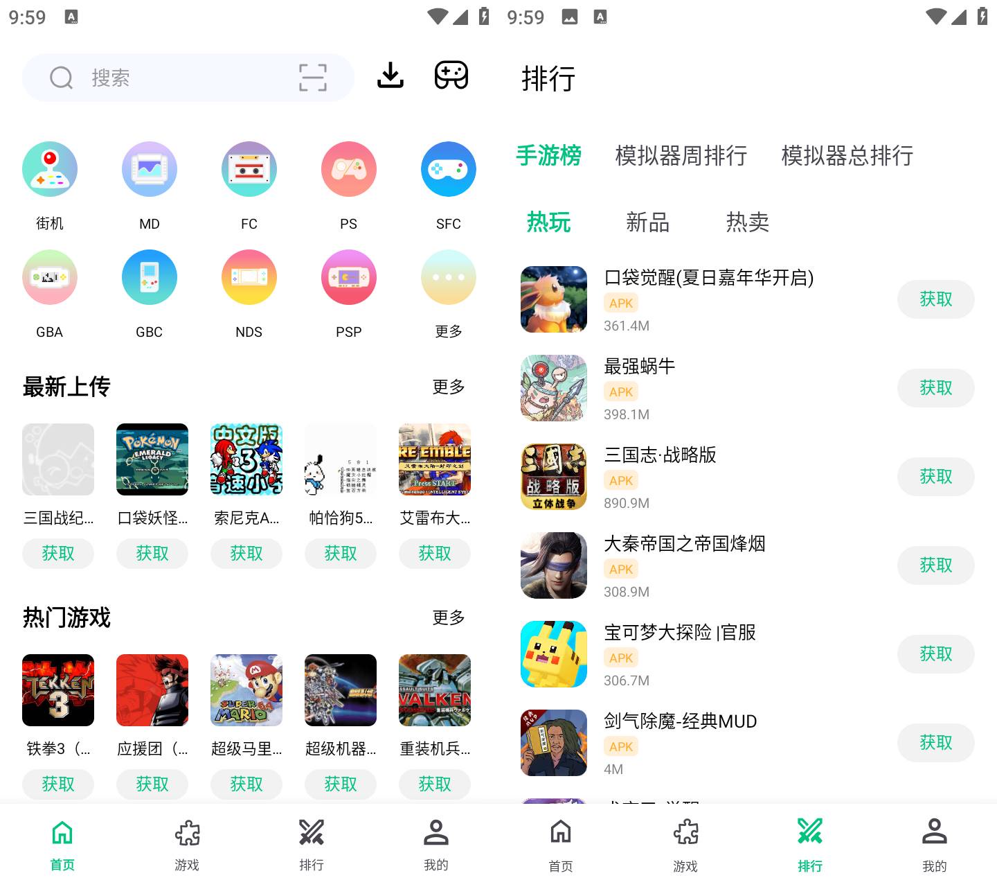 支持街机、掌机、家用机等 18 款经典游戏主机模拟,涵盖街机厅、FC、GBA、PS 等多类型主机游戏。
