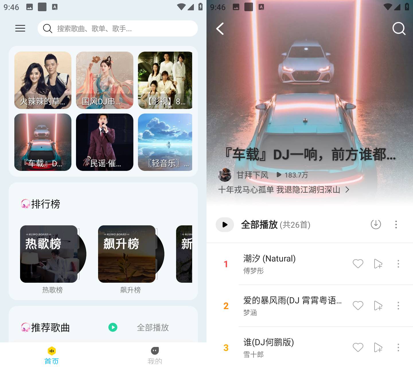 6、内置新歌榜、热歌榜、飙升榜,实时同步热门音乐排行。
